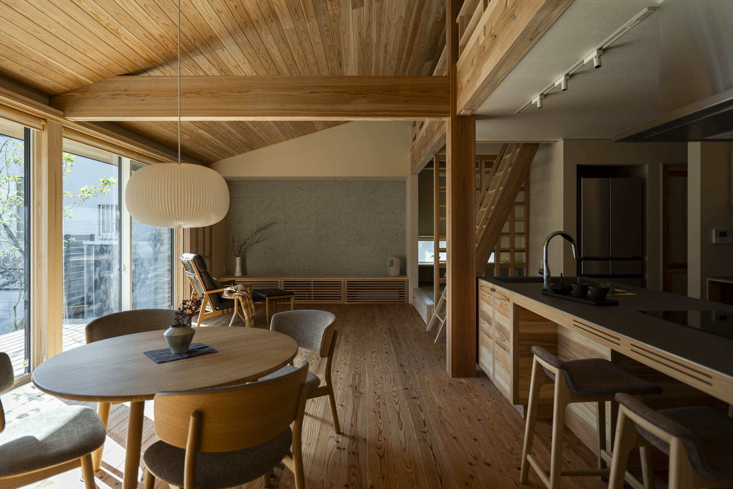 開放的で落ち着いた雰囲気があり、性能や素材の良さが自然と伝わってくる空間。
