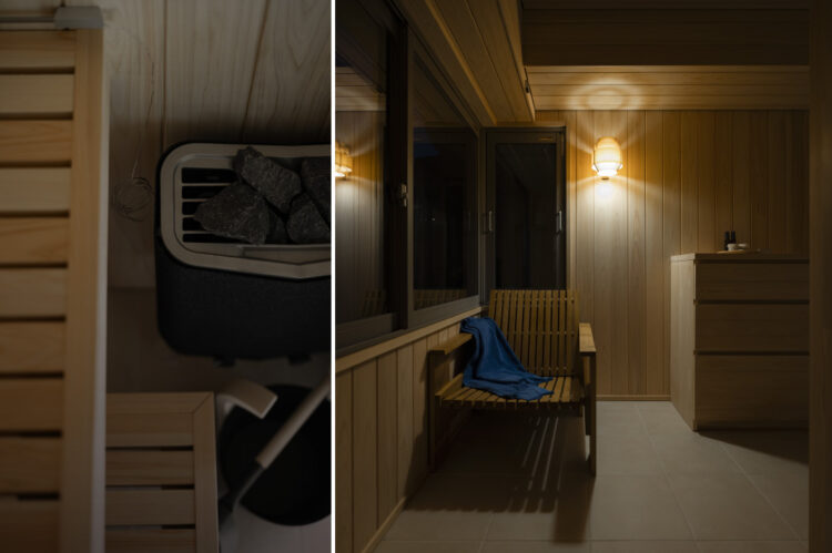 扉を開けると、美しい木の表情と豊かに広がる木の香りがやさしく迎えてくれます。プライベートサウナも備えた、リトリートな空間のご提案です。
